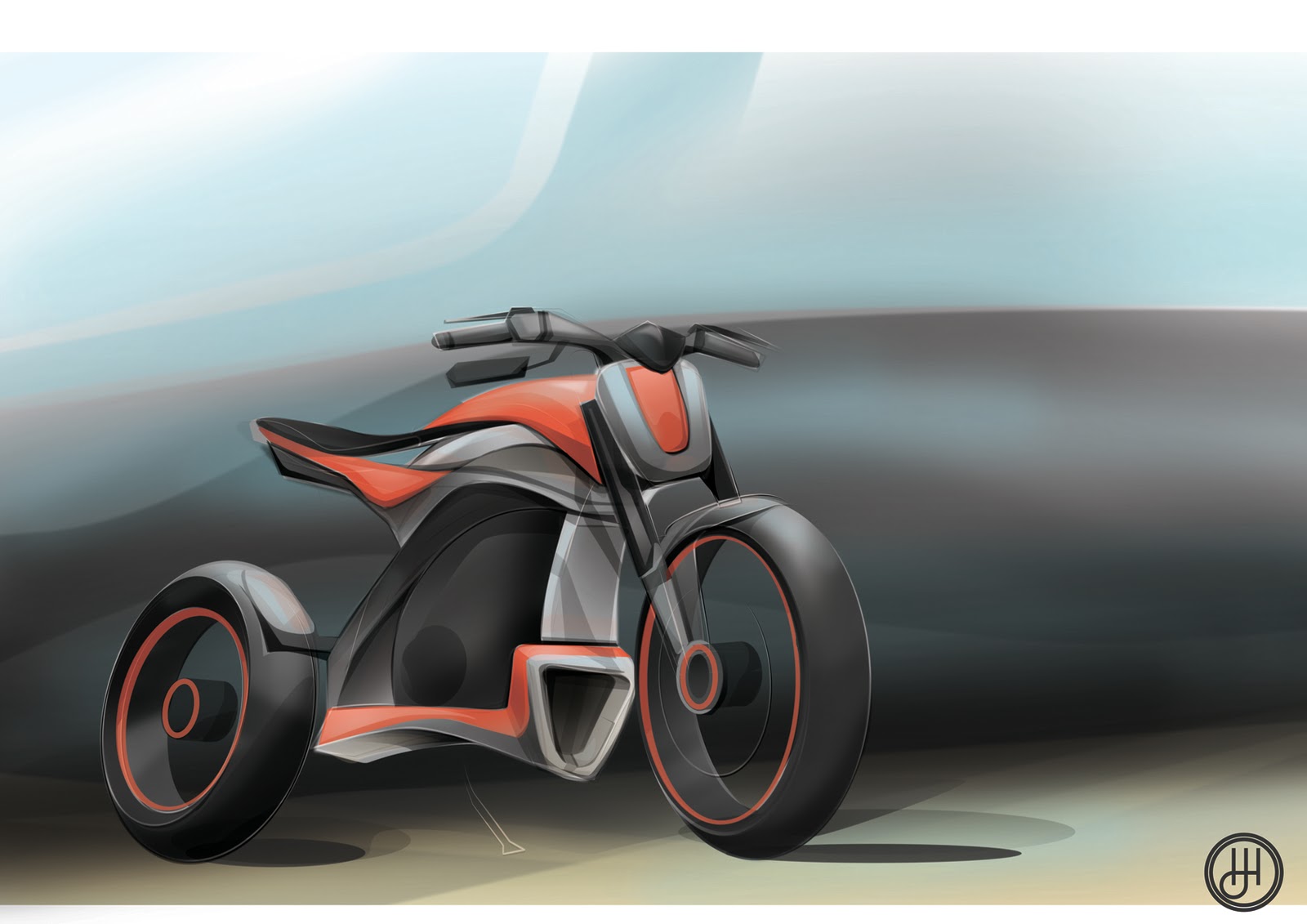This concept with the idea of simplifying the motorbike into sections. Also using more friendly, clean shapes to make the bike approachable even for a new rider.